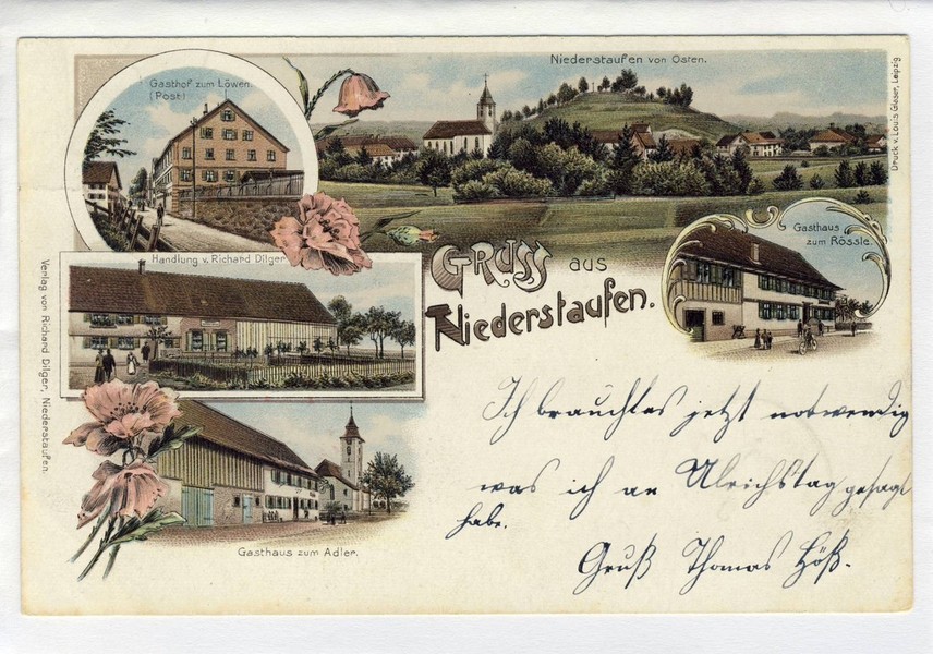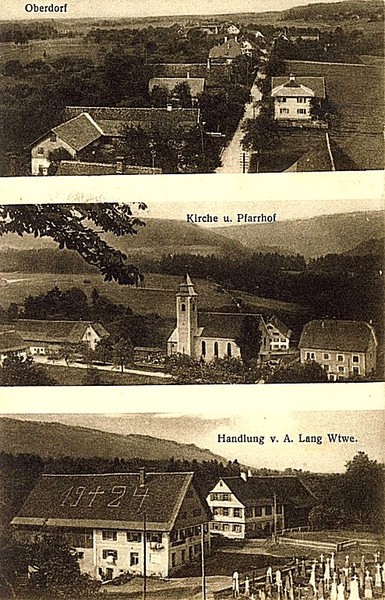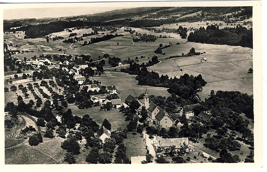 . . . aus verschiedenen Jahrzehnten finden sich hauptsächlich auf alten und neueren Postkarten. Aus dem Privatbesitz stammen Ansichten von Häusern bzw. landwirtschaftlichen Anwesen. Die meisten stammen aus der Zeit zwischen 1910 und 1914. Damals war offenbar ein Reisefotograf unterwegs, der seine Dienste den stolzen Landwirten anbot.